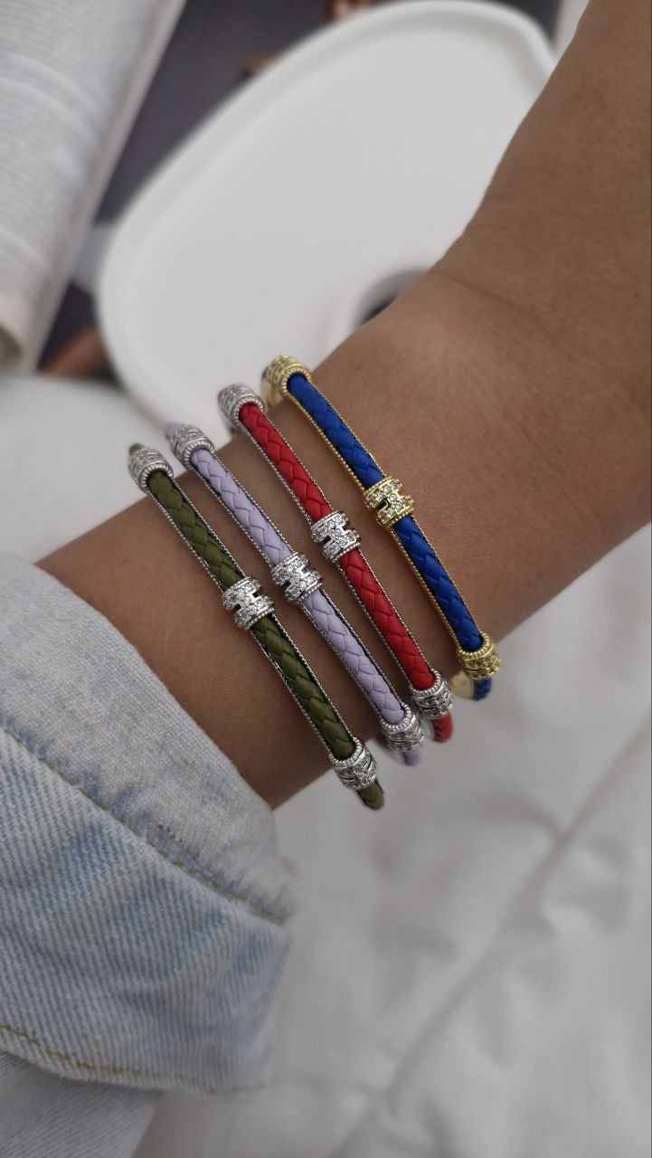 دستبند چرمی نگین دار