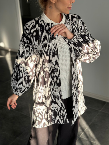پیراهن کرپ حریر کشدوزی آستین بلند