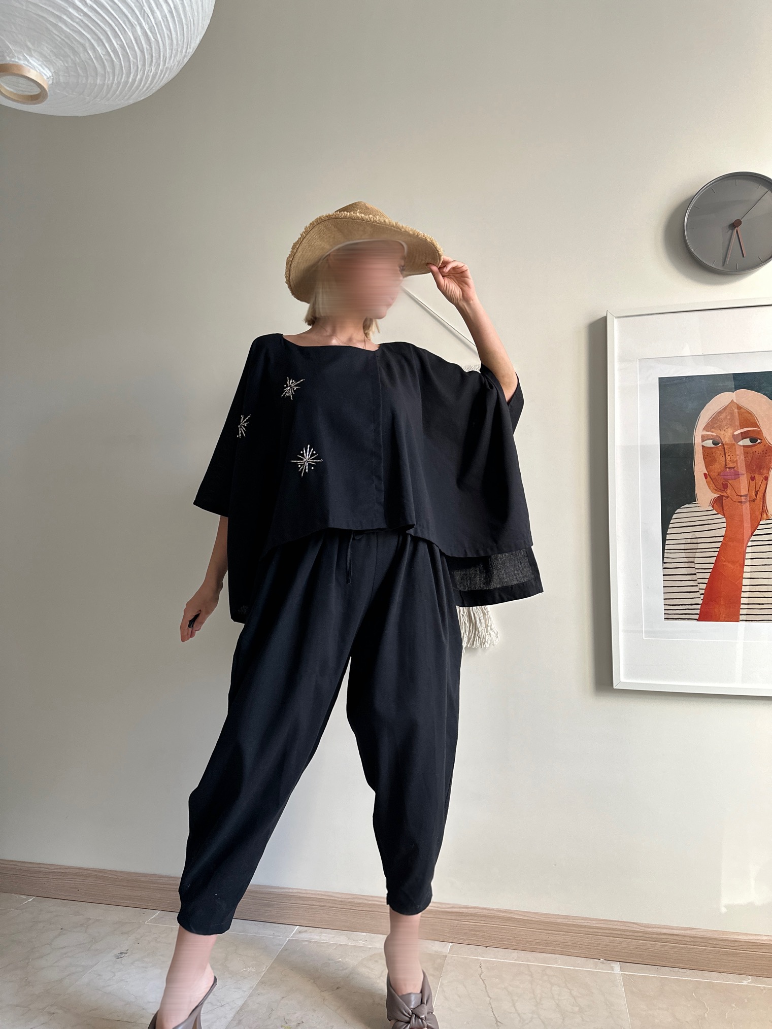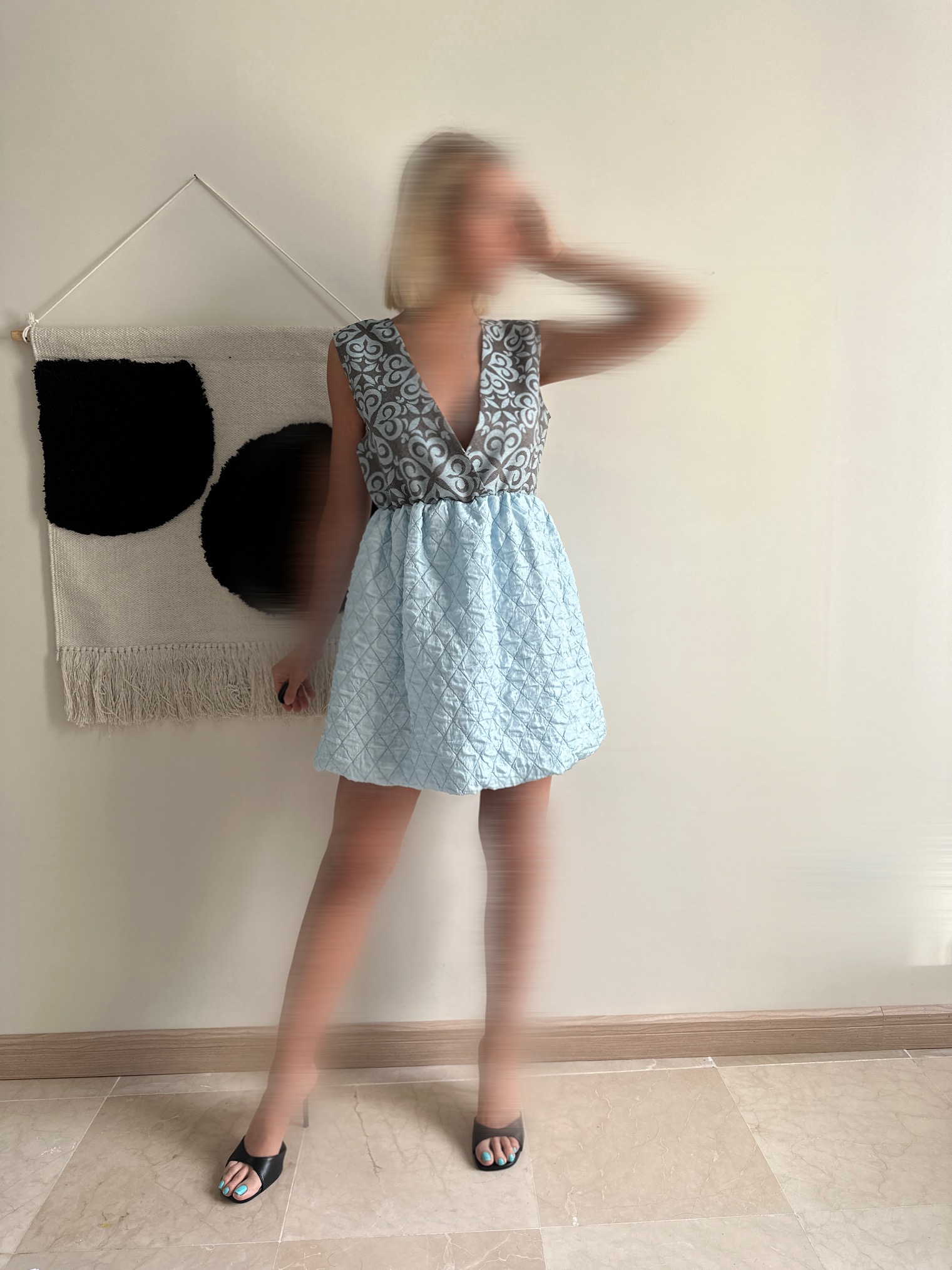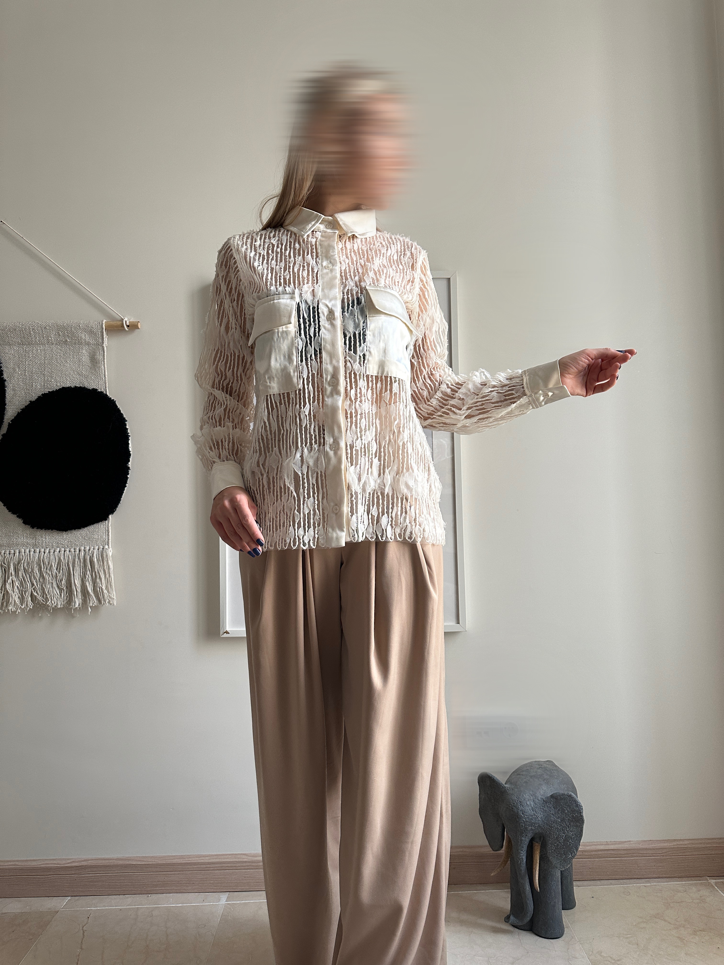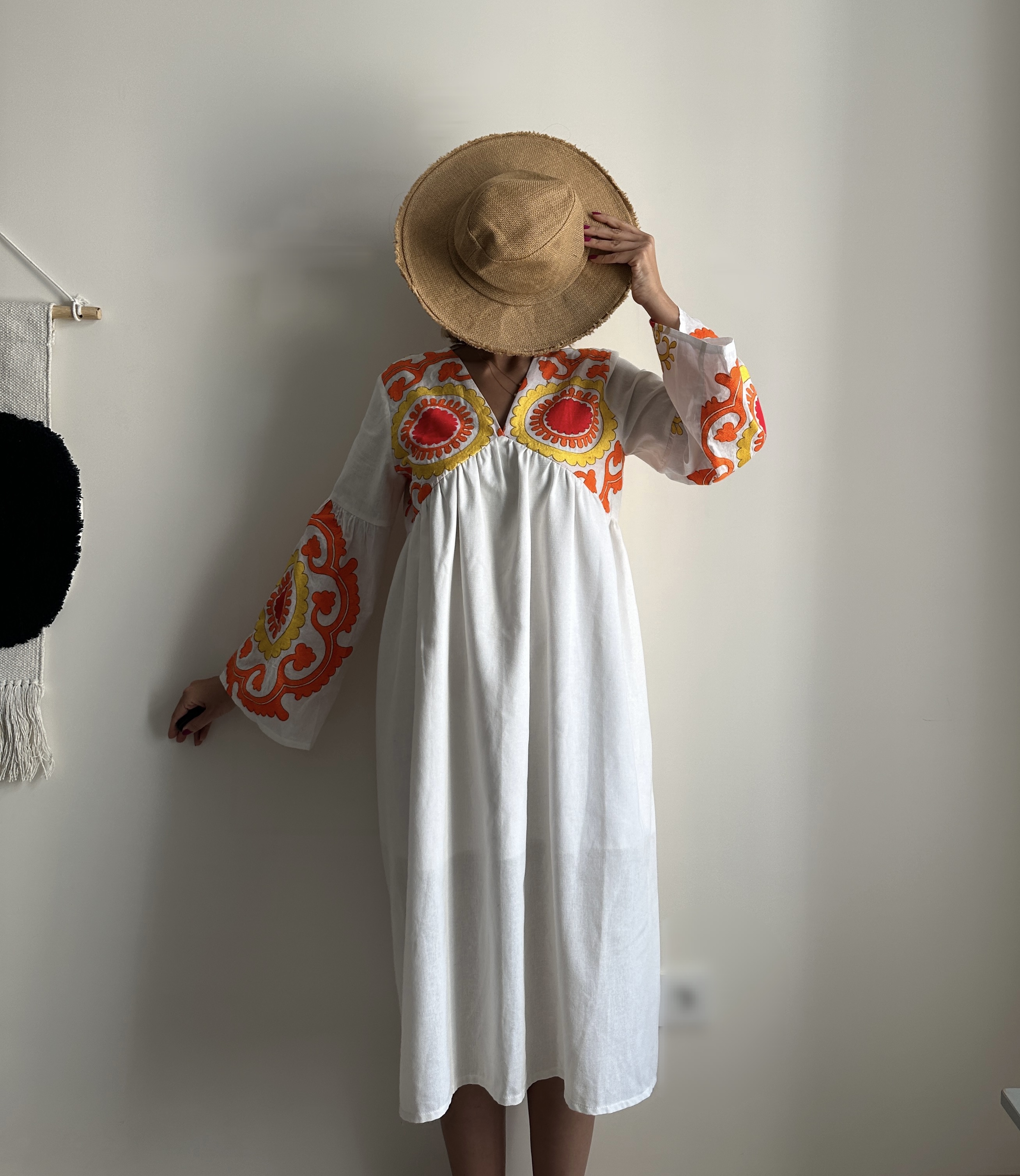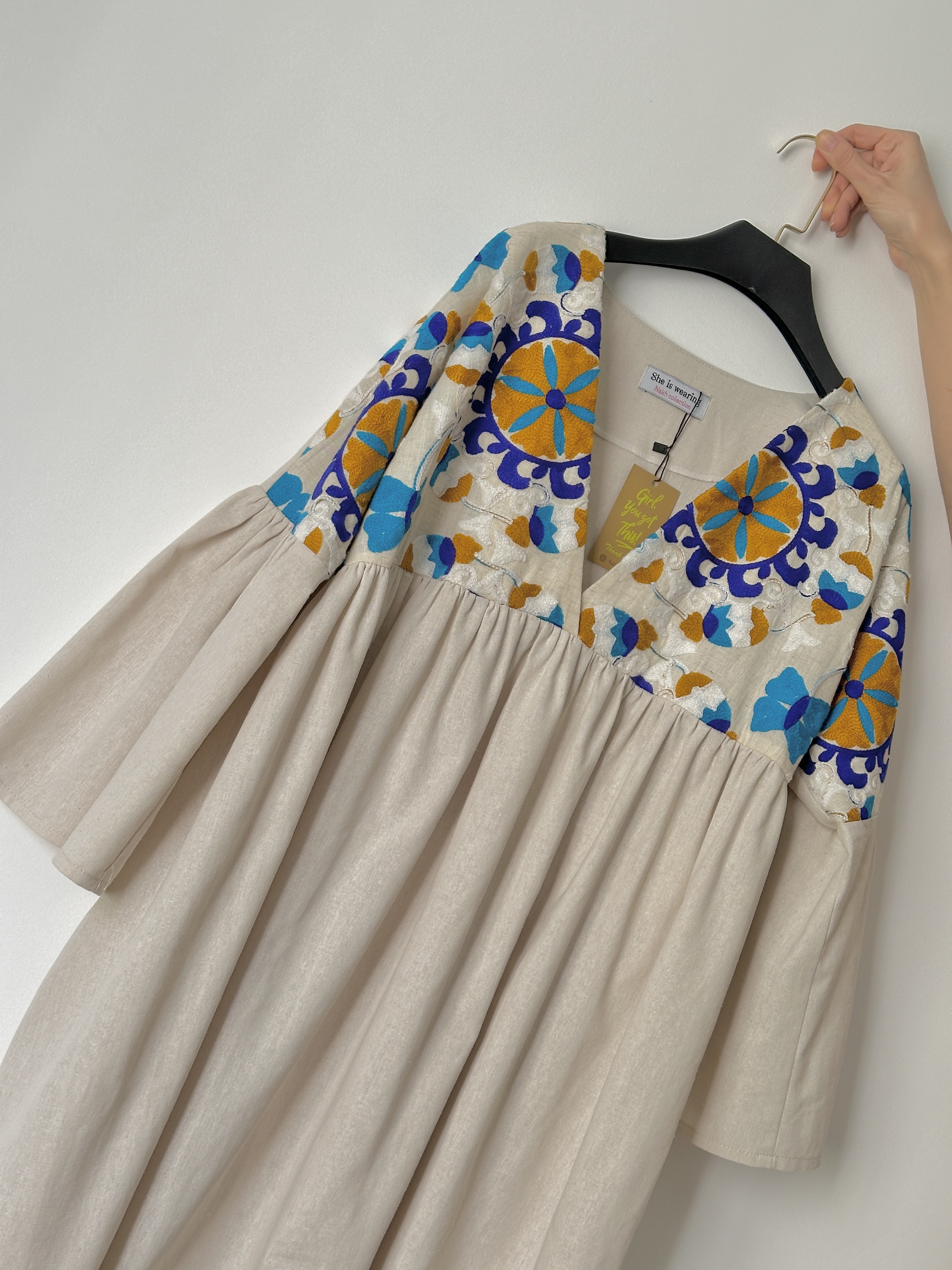پیراهن کرپ حریر کشدوزی آستین بلند
